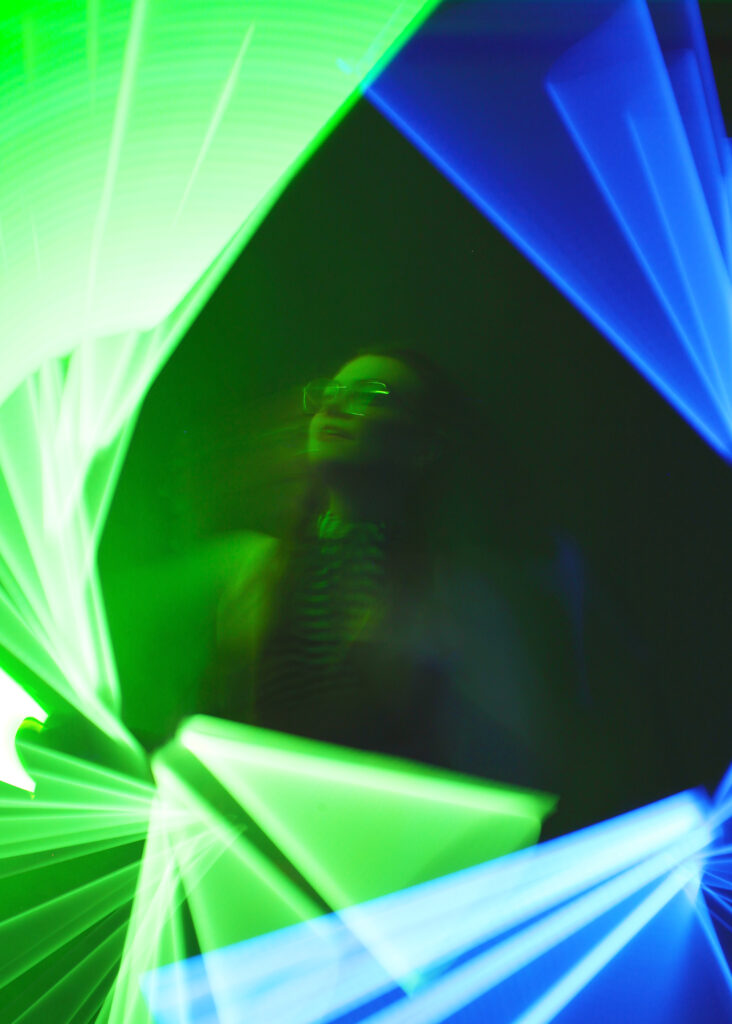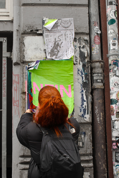 Vi lavede skulpturen ud af papir med blå på indersiden for at lave en ren kontrast til det hvide papir. Bogstavernes simple form skaber en “aha”- oplevelse, fordi det kan tage et par sekunder før man læser ordet.